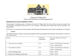 Rotherwick Village Hall Terms and Conditions and Hiring Agreement